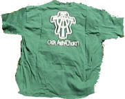 The Elegant Logo of the World on your choice of Black or Green T-Shirts. A big monogram on the rear elevation. A small, Lacoste-style logo on the front. Chic as all get-out! Comes with authentic 'Who was I last night?' wrinkles (removable-just add water. Or beer. Or weight.).